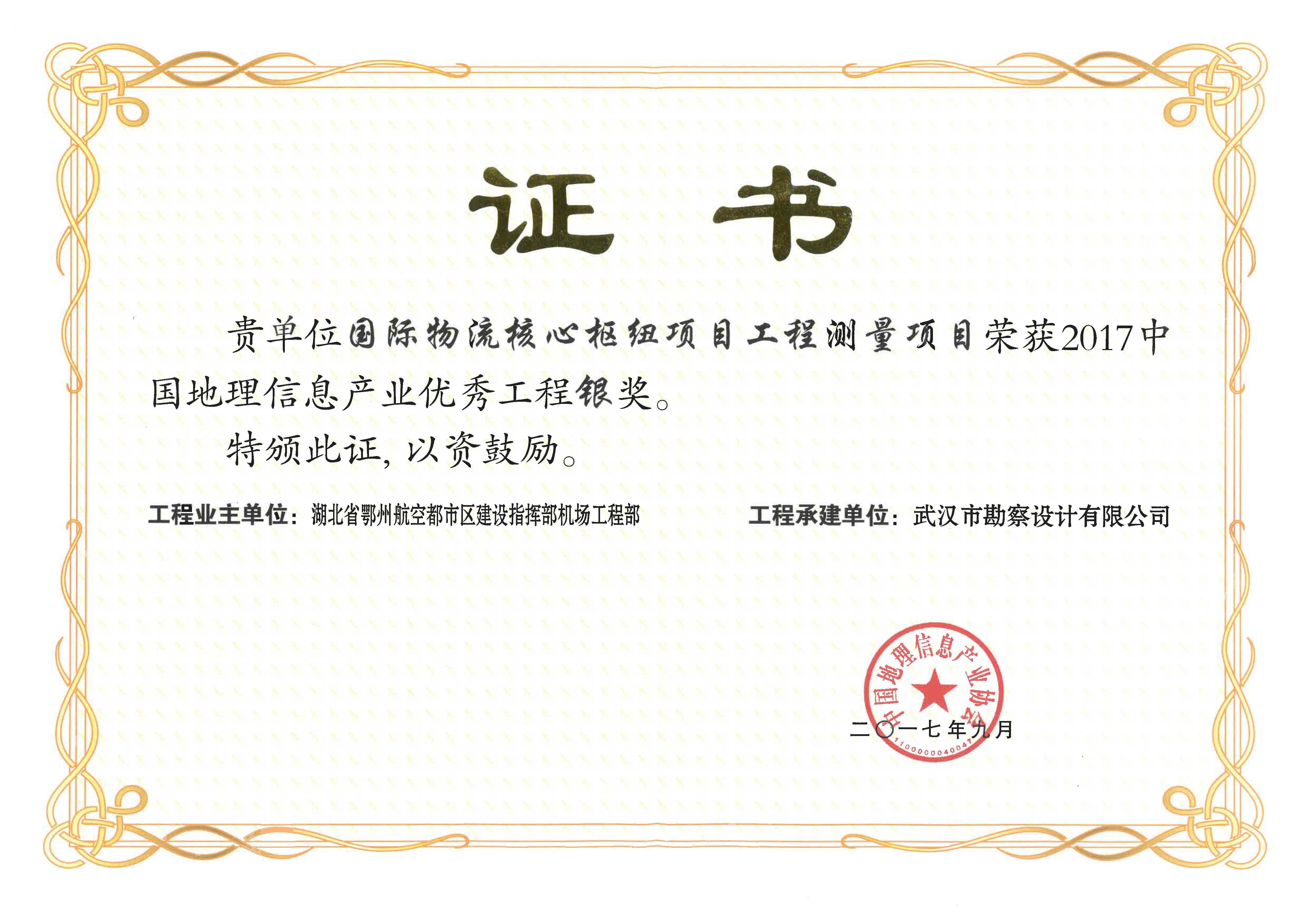 2017年中國地理信息產(chǎn)業(yè)優(yōu)秀工程銀獎(jiǎng)