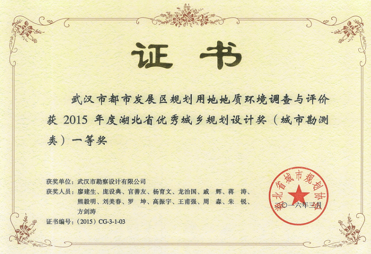 地調(diào)獲獎(jiǎng)證書