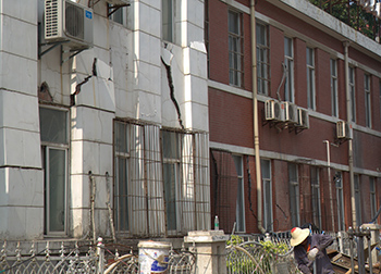 事故現(xiàn)場位于省人民醫(yī)院附近,張之洞路從解放路路口至復興路路口一段。事發(fā)工地上,大型吊車正開展設備清理吊運工作,事故地段道路已設置施工圍欄,只留下不到兩米寬的安全通道。盡管險情已初步得到控制,但事故區(qū)域邊緣樓房側(cè)壁大面積范圍內(nèi)出現(xiàn)裂縫,墻體輕微坍塌,有進一步下陷趨勢。