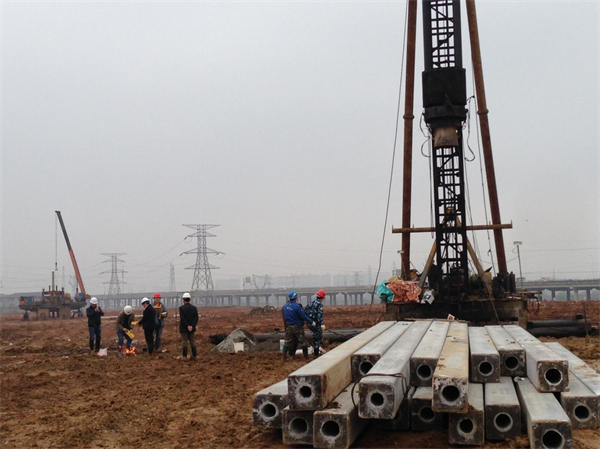該項(xiàng)目基礎(chǔ)類型主要采用預(yù)制樁,整個(gè)項(xiàng)目預(yù)制樁工程量近4萬米,工程量大,工期1個(gè)半月,工期非常緊。